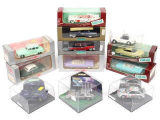 quelques exemplaires en série limitée - comprend notamment les modèles : CHEVROLET, CADILLAC, PANOZ, CHRYSLER, FORD & HUNDAI - quelques éléments cassés à recoller sur un modèle