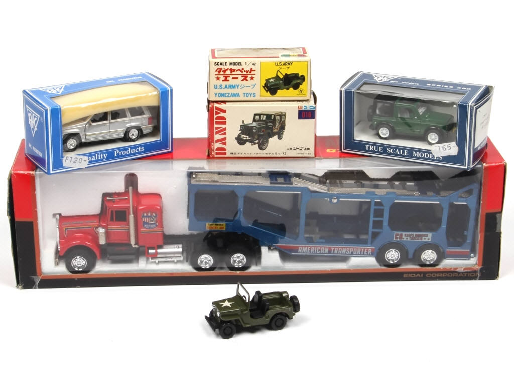 comprend notamment les modèles : SUZUKI, JEEP & KENWORTH - on y retrouve les marques : TOMICA DANDY, EIDAI, AHC & YONEZAWA TOYS DIAPET - quelques boites en état 'c'