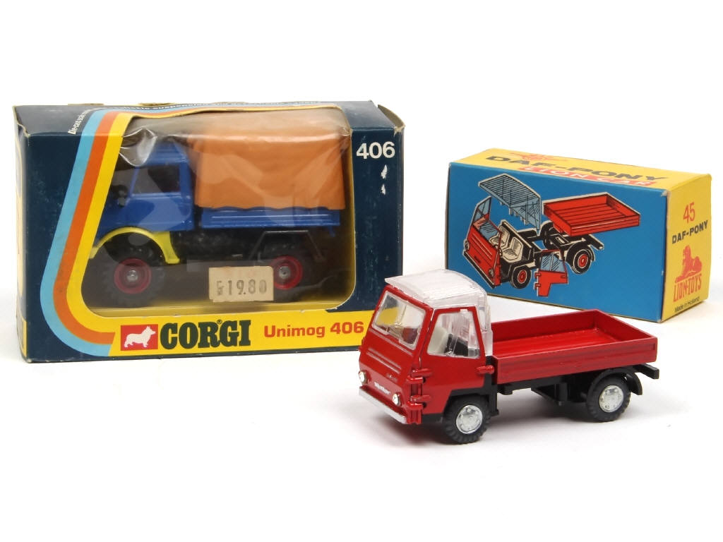CORGI TOYS (GB) 406 MERCEDES-BENZ UNIMOG 406 Bâché bleu, jaune & marron clair
