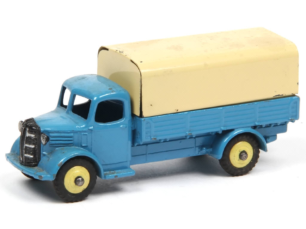 DINKY TOYS (GB) 413 AUSTIN Plateau bâché bleu moyen, bâche crème & jantes jaune citron
