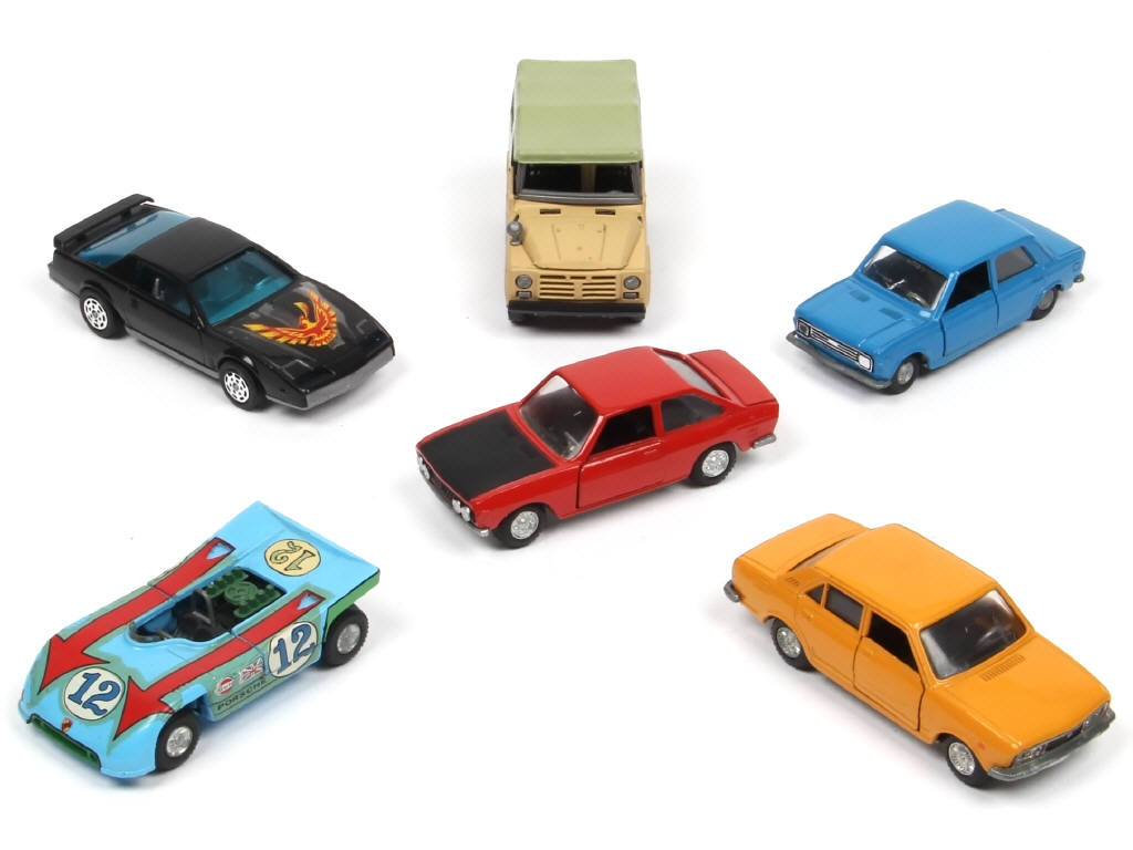 comprend notamment : PORSCHE 908/03, FIAT CAMPAGNOLA, 124 SPORT, 128 & 132 - on y retrouve les marques : MERCURY (5 modèles) & MATTEL - quelques parties ternies & d'autres retouchées - certaines suspensions affaissées