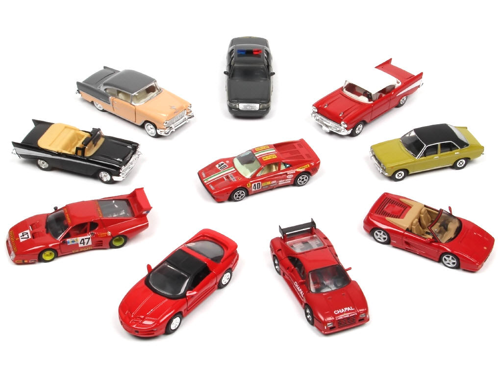 comprend les modèles : CHEVROLET, FERRARI, PONTIAC & HILLMAN - possibilité de petits éléments manquants - on y retrouve notamment les marques : ROAD CHAMP, VANGUARDS, BRUMM, CORGI & MINICHAMPS