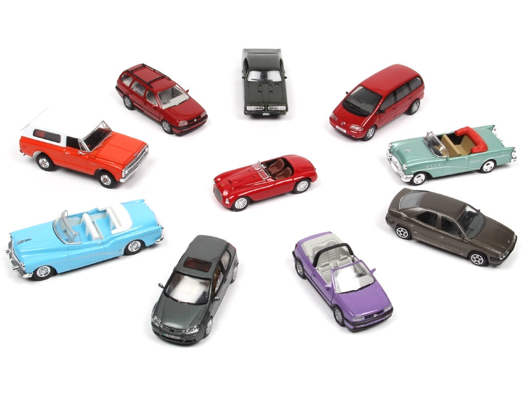 comprend notamment : PONTIAC, BUICK, FERRARI, CITROEN, VOLKSWAGEN & DAIMLER - possibilité de petits éléments manquants - on y retrouve notamment les marques : SCHABAK, HERPA, ERTL, BBURAGO & DINKY MATCHBOX