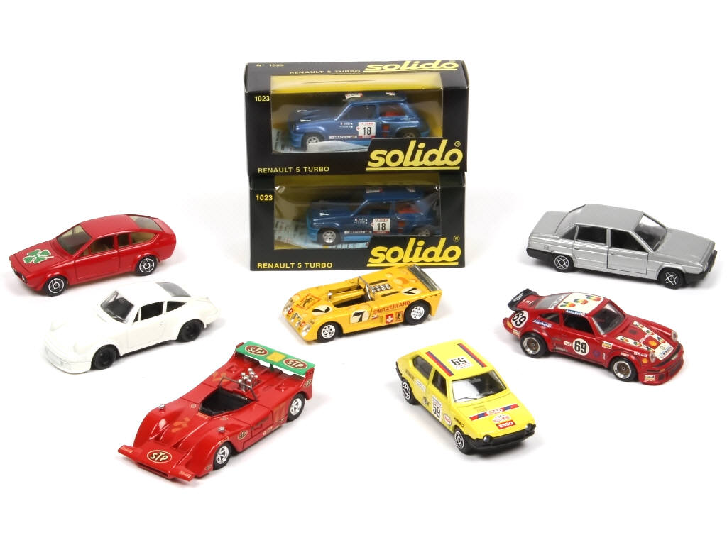 comprend notamment les modèles : RENAULT, PORSCHE (sans jantes), FIAT, MARCH & TALBOT - 2 modèles en boite en état 'a'