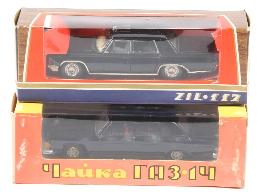 comprend : ZIL 117 (antenne légèrement déformée) & GAZ 14 - quelques petits accrocs & frottements sur les boîtes dont une légèrement décolorée