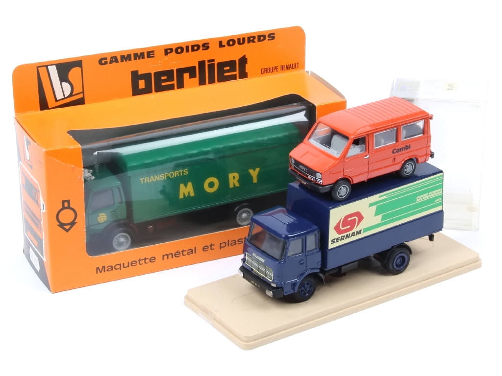 miniatures reproduisant les modèles : IVECO, UNIC/FIAT (boîte non d'origine) & BERLIET - on y retrouve les marques : LBS & OLD CARS (un pare-chocs cassé)