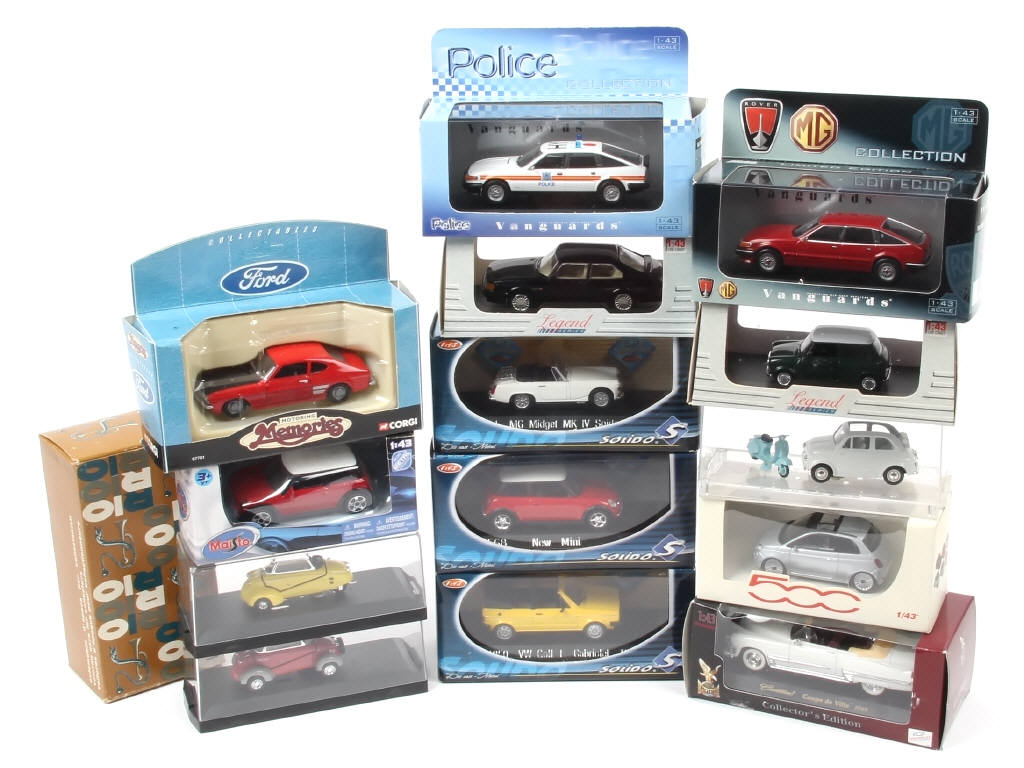 miniatures reproduisant notamment les modèles : FIAT, SAAB & MINI - on y retrouve notamment les marques : RIO, UNIVERSAL HOBBIES & LLEDO - possibilité de petits accessoires manquants - quelques boîtes en état 'c'