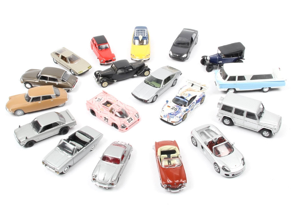 miniatures reproduisant notamment les modèles : CITROËN, PORSCHE & FORD - on y retrouve notamment les marques : SOLIDO, NOREV & MINICHAMPS- quelques petits manques & légères parties cassées