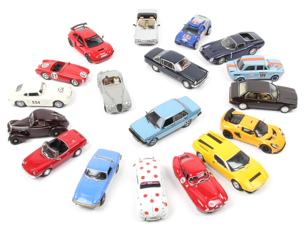 miniatures reproduisant notamment les modèles : ALFA ROMEO, VOLKSWAGEN & MASERATI - on y retrouve notamment les marques : SPARK, NOREV, TOP MODEL & STARLINE - quelques petits manques