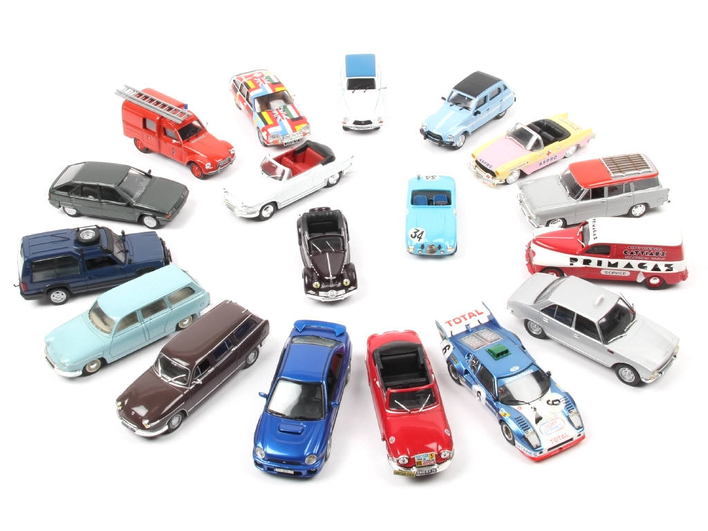 miniatures reproduisant notamment les modèles : SIMCA, PANHARD, CITROËN & SUBARU - on y retrouve notamment les marques : NOREV, IXO & ALTAYA - quelques petits manques & parties cassées