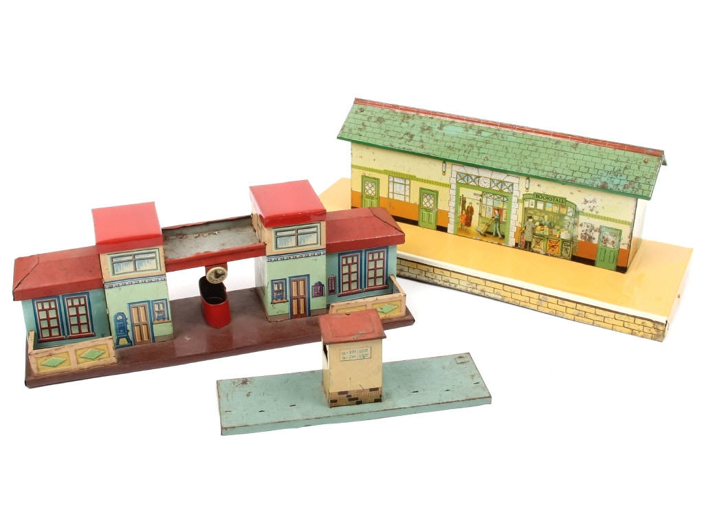 on y retrouve notamment la marque HORNBY GB - on y joint un guichet de quai - avec parties repeintes, non d'origine & manquantes - traces d'oxydation