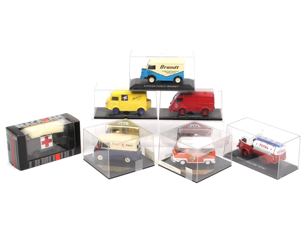 comprend notamment : CITROEN 1200 kg 'MICHELIN', 'BRANDT, RENAULT GALION 'TOTAL', 1000 kg pompiers & ambulance militaire (craquelures sur les décalques) - on y retrouve notamment les marques : CITY, ELIGOR & MACADAM - fêlures plus ou moins importantes sur certains couvercles de boites