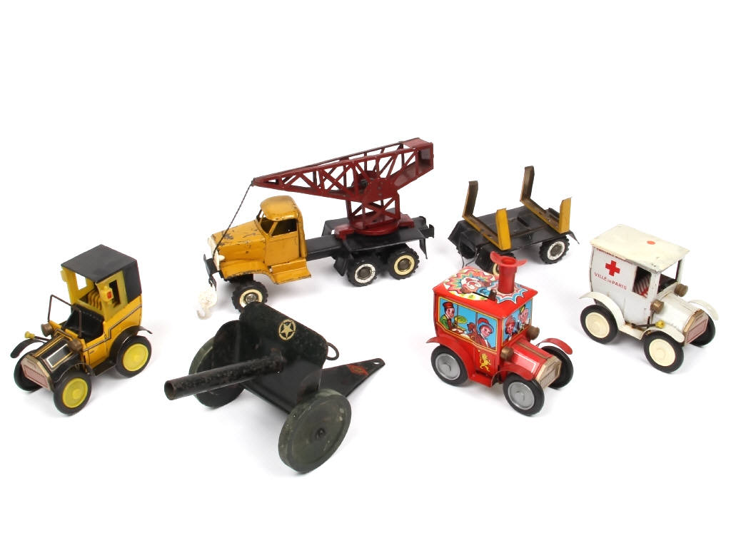 2 moteurs à ressort & 2 moteurs à clef (fonctionnent) - avec manques & parties cassées - parties oxydées - on y retrouve notamment les marques : WAMOO, FRANCE JOUETS & J.C