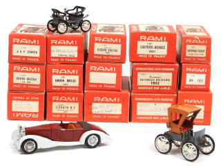 comprend notamment les modèles : DELAGE, SPA (importantes retouches), CITROEN, DEDION BOUTON, HISPANO SUIZA & MIEUSSET - quelques manques, parties cassées & traces d'oxydation - boites en états 'b' & 'c'