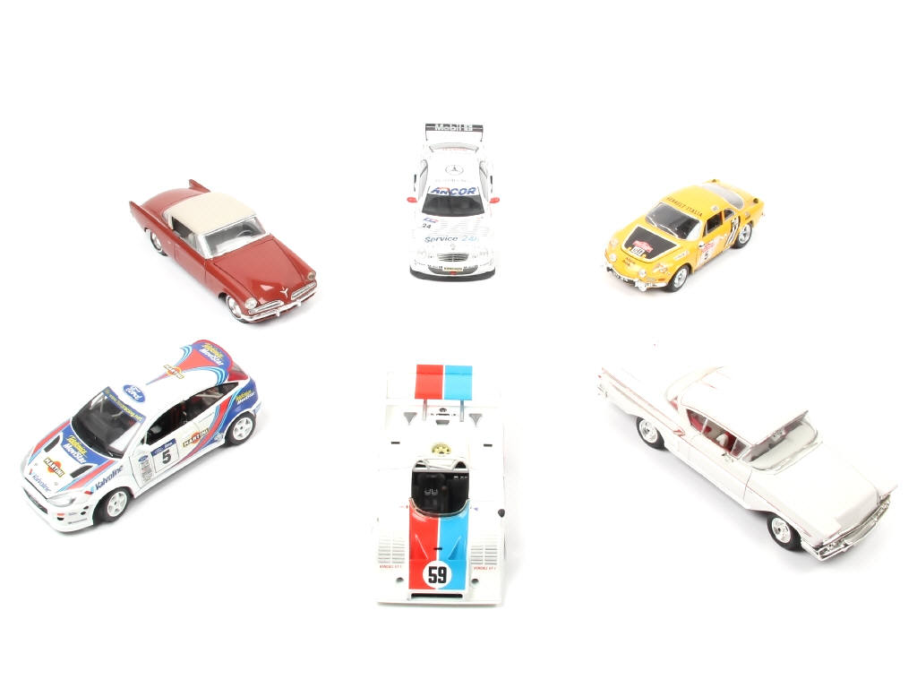 grandes échelles - miniatures reproduisant les modèles : MERCEDES, STUDEBAKER, FORD, PORSCHE, ALPINE & CHEVROLET - on y retrouve notamment les marques : MAISTO, BBURAGO & MINICHAMPS - quelques petits manques & éléments cassés