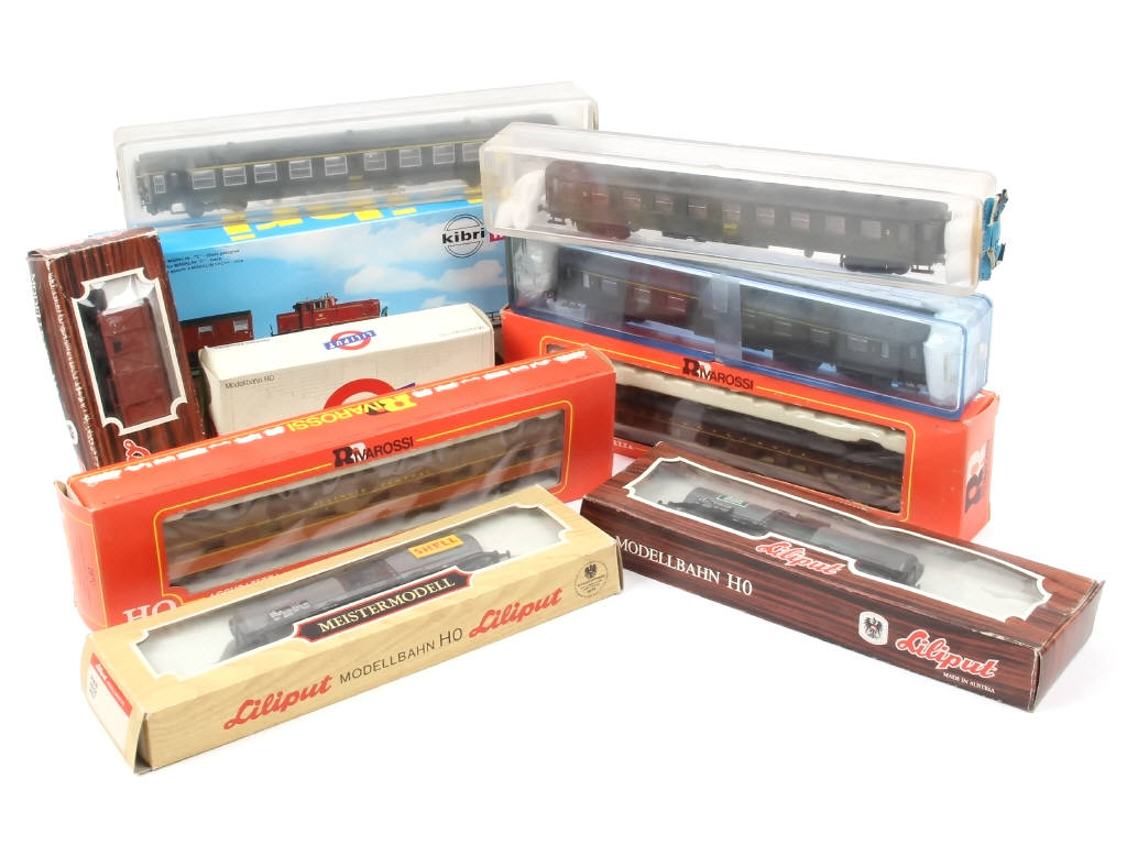 on y retrouve les marques : LILIPUT, KIBRI, RIVAROSSI & FRANCE TRAINS - quelques petits manques (possibilité de parties cassées) - les boîtes sont en états de 'b' à 'c'