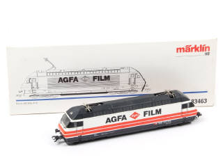 MÄRKLIN 'HO' (ALLEMAGNE) 83463 Motrice électrique 460 015-1 'AGFA FILM' blanc, rouge orangé & noir