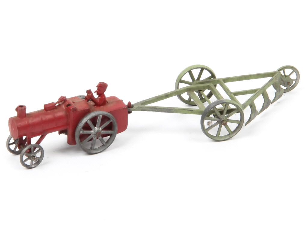 modèle en plomb - version sans volant latéral - un support d'axe de roues cassé - avec charrue (défauts de peinture d'origine)