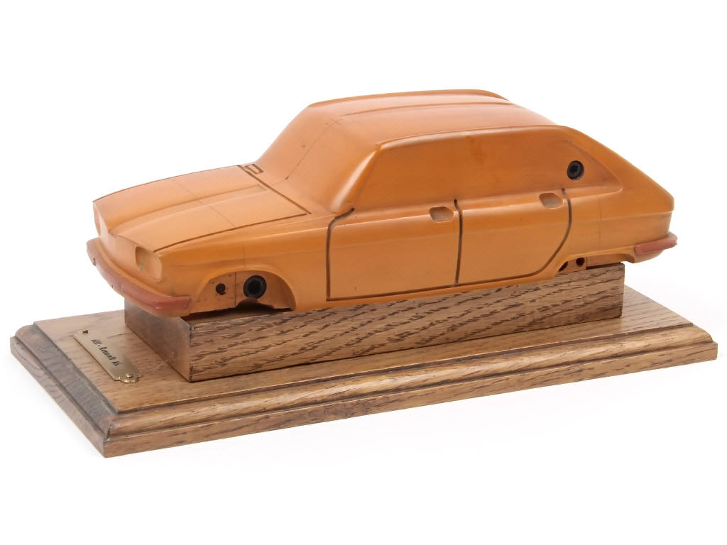 longueur 28 cm - réalisation en résine, présenté sur socle en chêne massif - frottements plus ou moins importants sur la carrosserie (très légers manques de matière par endroits) - les maîtres modèles servaient à la fabrication des moules, il étaient fait en résine, bois, aluminium ou plâtre à une échelle double ou triple du futur modèle - pièce récupérée lors de la fermeture de l'usine - RARISSIME !