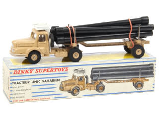 DINKY TOYS (FRANCE) 893 UNIC Saharien transport de pipe-lines (version avec jantes concaves & remorque non ajourée) sable & blanc