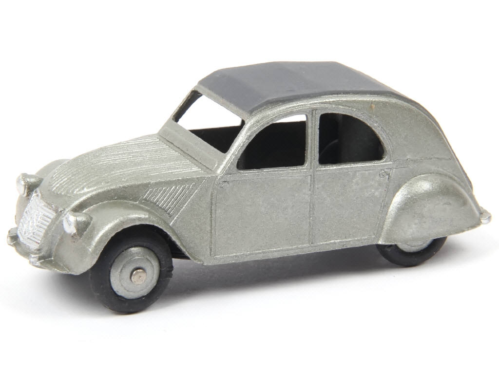DINKY TOYS (FRANCE) 24T CITROËN 2CV (version avec un feu arrière) gris métal doré, axe de roues arrière maté (type 2)