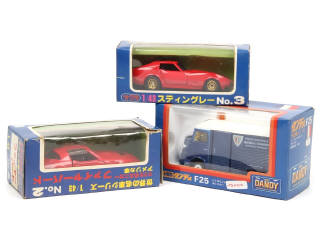 comprend : CITROEN 1200 KG 'POLICE NATIONALE', PONTIAC FIRE BIRD & CHEVROLET CORVETTE STINGRAY - on y retrouve les marques : TOMICA DANDY & K.K SAKURA