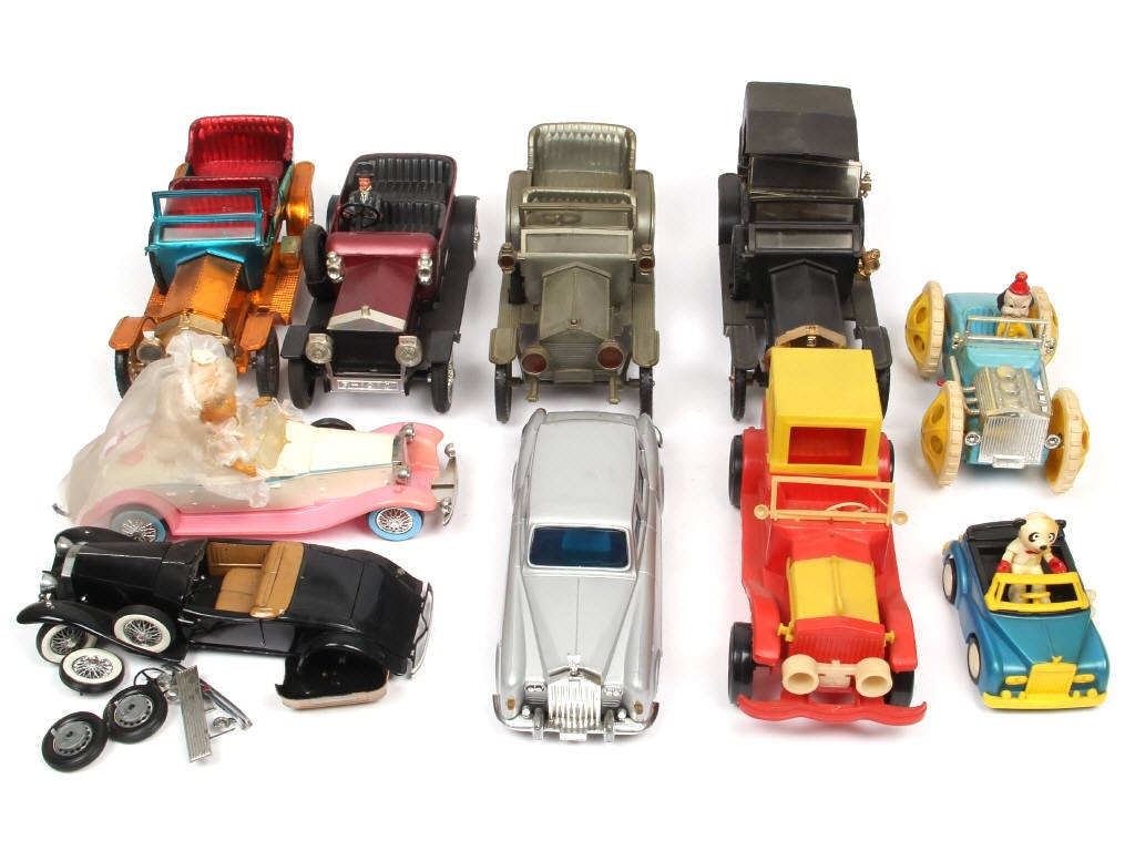 fabrications en plastique - plusieurs exemplaires avec moteur à clef ou à piles (non testé) - avec manques & parties cassées - on y retrouve notamment les marques : TUDOR ROSE, NACORAL & TAT