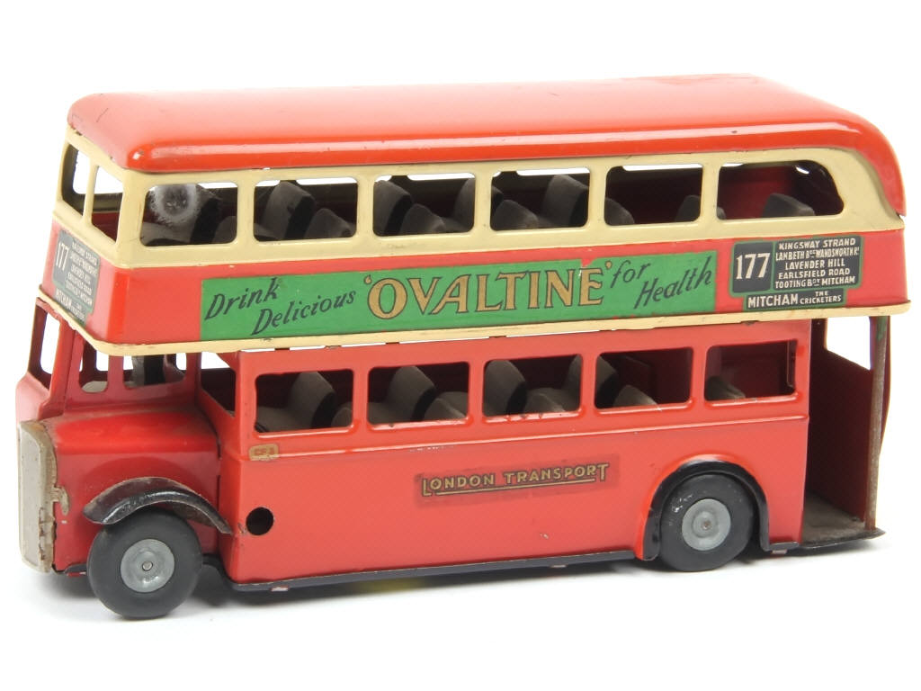 TRI-ANG-MINIC (GB) Autobus londonien à impérial 'OVALTINE' brique & mastic