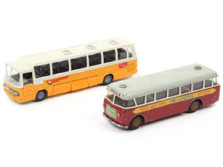 comprend: MERCEDES O302 'PTT-SUISSE' (quelques petits manques sur les décalques) & VOLVO 'HELLESENS' (jantes oxydées)