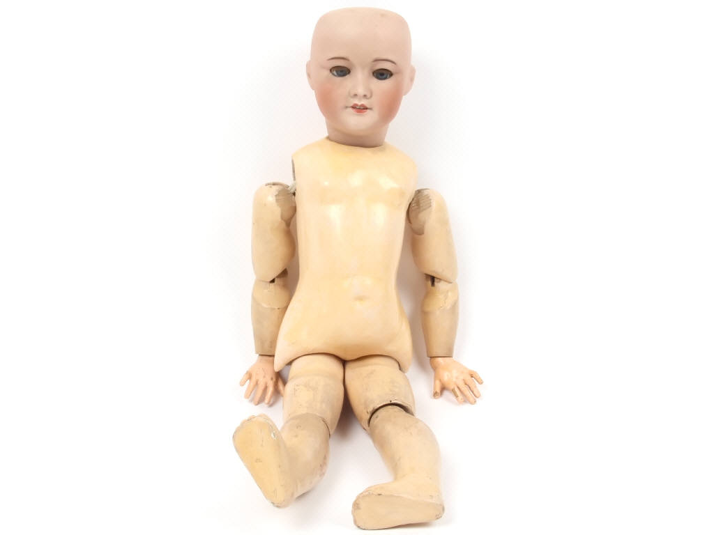 55 cm environ - marquages 'UNIS FRANCE 301' - tête en biscuit (aucun fêle révélé au test de la lampe) - yeux bleu dormeurs avec cils - corps articulé en composition (éclats & frottements) - cordage à retendre (non d'origine) - sans accessoires