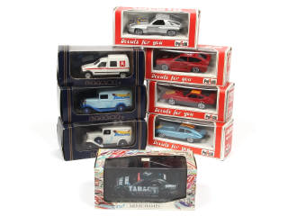 différentes compositions - comprend les modèles : JAGUAR, FERRARI, ALFA ROMEO, PORSCHE, CITROEN & MERCEDES - on y retrouve les marques : ELIGOR/LBS, POLISTIL & MINICHAMPS - certaines boites avec petites fêlures & plus ou moins poussièreuses