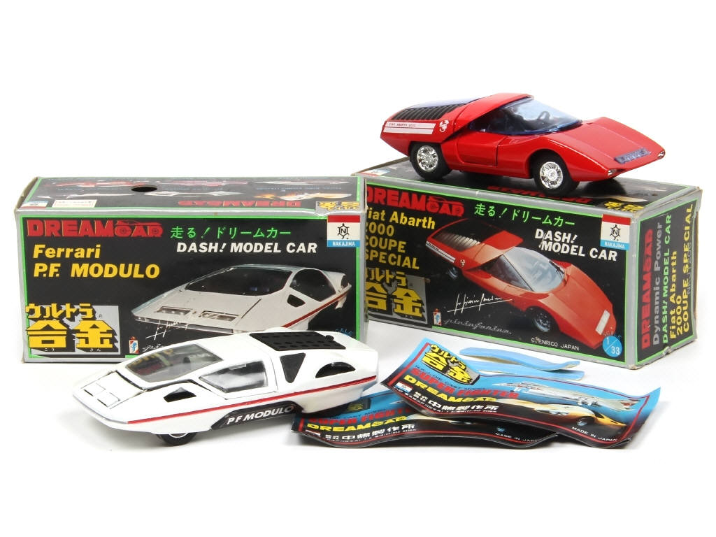 avec moteurs à friction - comprend : FERRARI P.F. MODULO & FIAT ABARTH 2000 coupé - avec catalogues présentant les modèles de la marque
