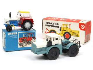 fabrication en métal & plastique - comprend : KUPOLEY (mousse collée sur la carrosserie par endroits) - boite en état 'c' - avec ruban adhésif) & URSUS C-385 - on y retrouve notamment la marque ESTETYKA (TCHECOSLOVAQUIE)