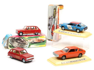 comprend les modèles : 6, 17 TS & rallye - quelques pneus collés sur certains socles - quelques accrocs & déformations sur 2 boites (manque un couvercle sur une autre)
