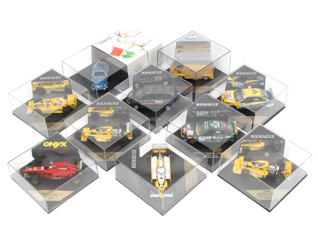 comprend les modèles : RENAULT (9 exemplaires) & FERRARI - on y retrouve notamment les marques : TROFEU, ONYX & CITY - quelques couvercles en état 'c'