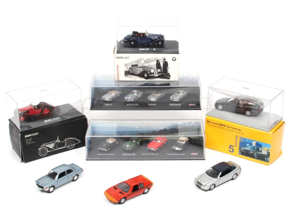 comprend les modèles : MERCEDES & BMW - 3 modèles désolidarisés de leur socle (possibilité de petites parties déformées & cassées) - 11 modèles en boites (états 'a' à 'd')
