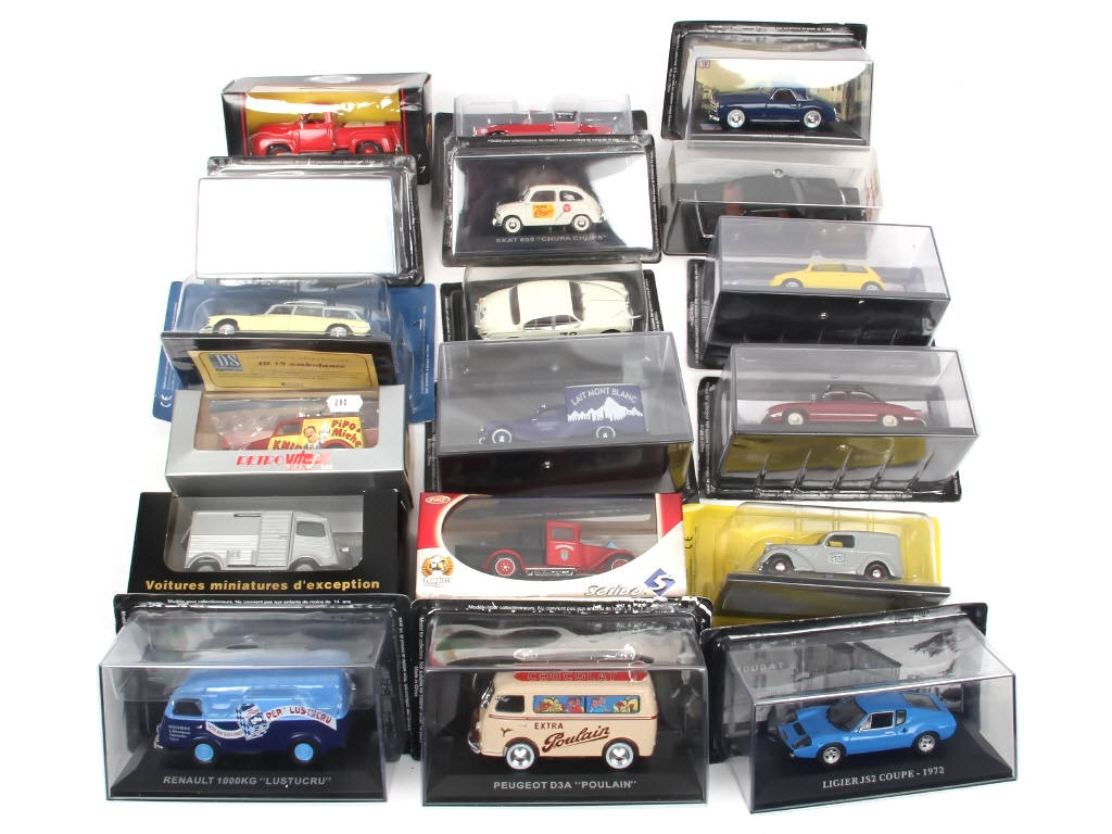 on y retrouve notamment les marques : SOLIDO, VITESSE, MAISTO, VEREM & COMPAGNIE EUROPEENNE DU COLLECTIONNEUR - quelques fêlures sur certaines boites