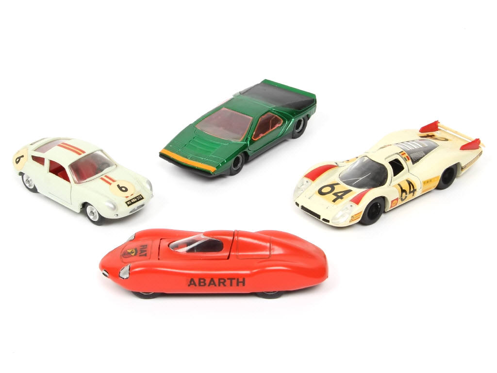 comprend : FIAT ABARTH, 1000, CARABO BERTONE & PORSCHE 908 - légères traces d'humidité & carrosseries encrassées par endroits