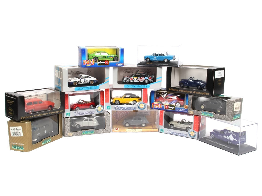 on y retrouve les marques : NOREV, VITESSE (certains en série limitée), CARARAMA, ELIGOR, BBURAGO & MINICHAMPS - possibilité de quelques fêlures sur certains couvercles