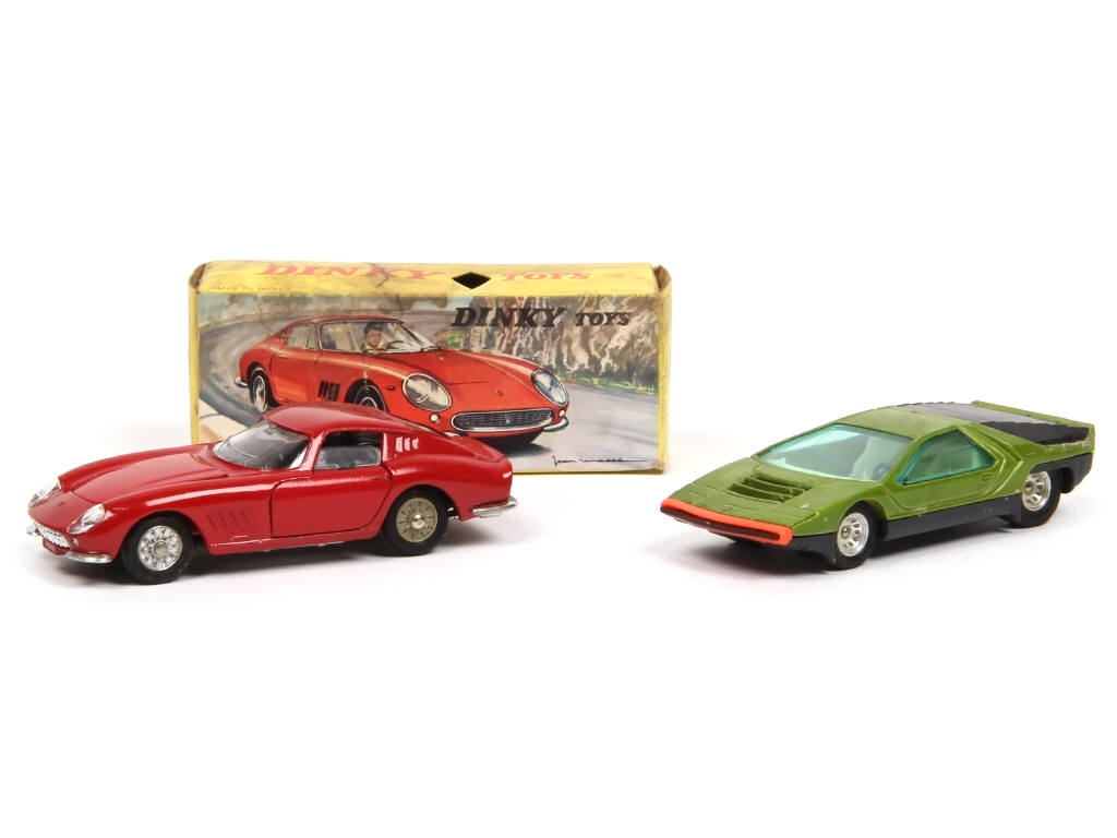 comprend : FERRARI 275 GTB (boite avec salissures & taches d'humidité) & ALFA ROMEO CARABO BERTONE (carrosserie plus ou moins encrassée avec humidité - sans boite)