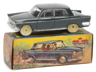 longueur : 11 cm - moteur à friction (à revoir) - plancher légèrement oxydé - pneus plus ou moins séchés dont certains craquelés - boite avec humidité & fortement salie