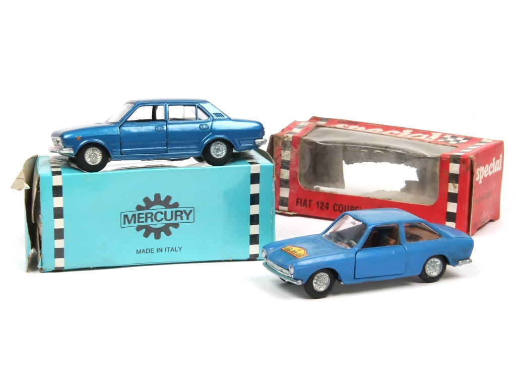 comprend : 132 & 124 coupé sport (un décalque ajouté - peinture de la carrosserie ternie avec traces d'humidité) - boites en état 'e'