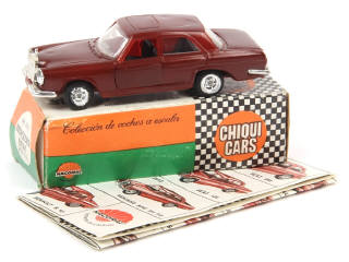 série 'CHIQUI CARS' - avec dépliant présentant les différents modèles de la marque - parties fondues sur le toit - manque décalques de plaques minéralogiques - jantes plus ou moins fondues - boite déformée