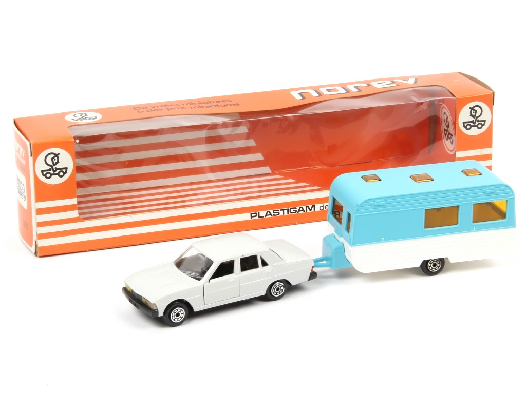 NOREV (FRANCE) 229 PEUGEOT 604 avec caravane bleu & blanc