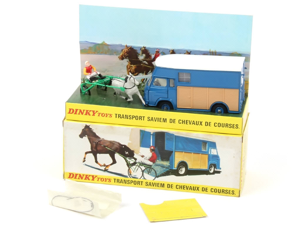 DINKY TOYS (FRANCE) 571 SAVIEM Goélette transport de chevaux bleu, bois, toit blanc
