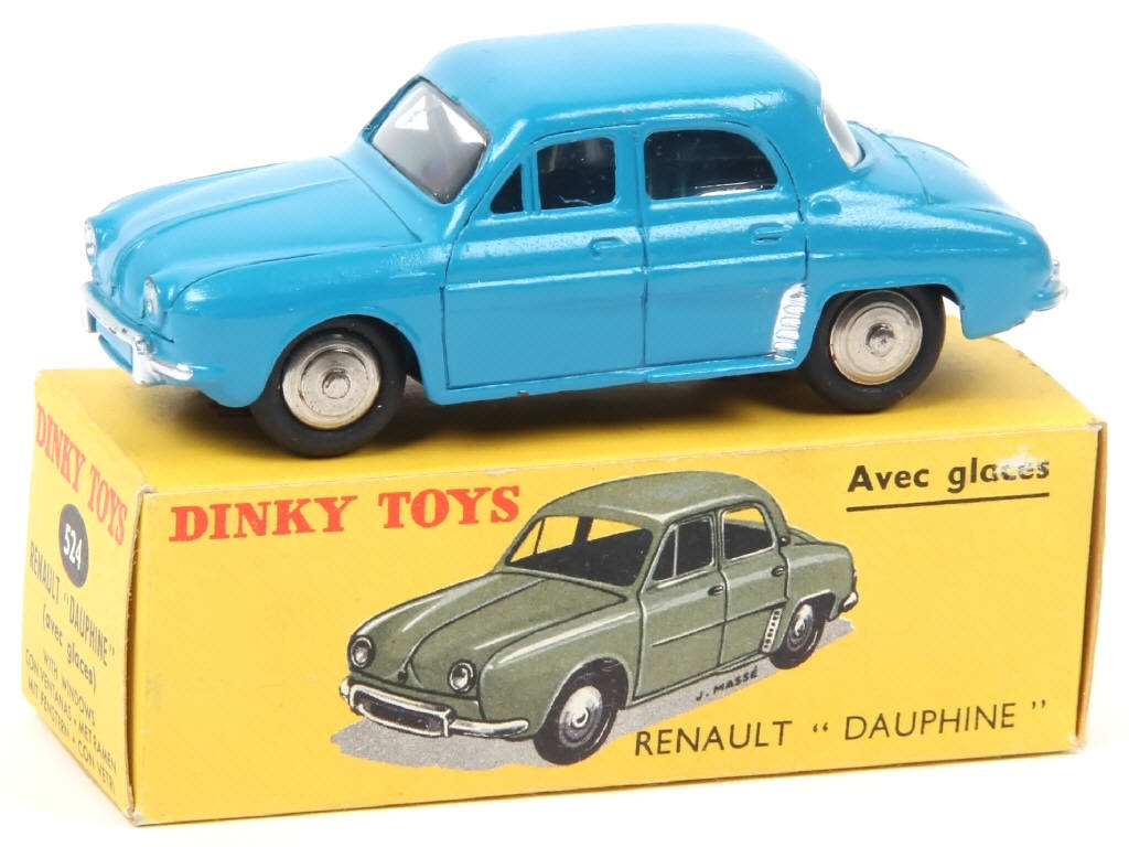 DINKY TOYS (FRANCE) 524 RENAULT DAUPHINE (version avec vitres & jantes convexes) bleu vif