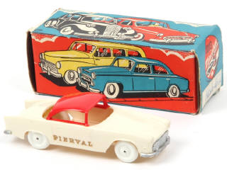 la mention 'PIERVAL' est gravée en lettres dorées sur le côté droit de la carrosserie (très légèrement déformée) - un petit manque de papier sur un rabat de boîte