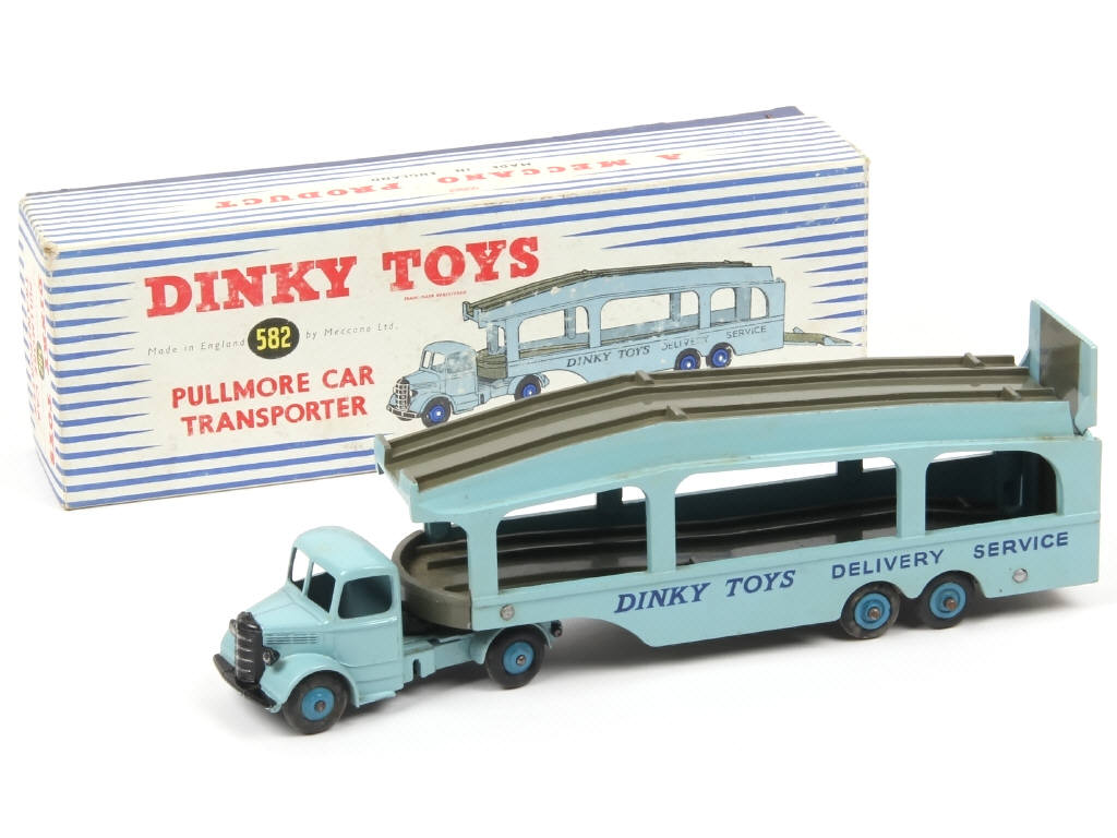 DINKY TOYS (GB) 582 BEDFORD PULLMORE CAR TRANSPORTER bleu ciel, chemin de roulement gris brun