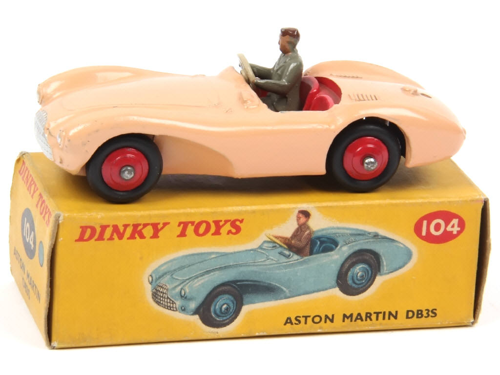 DINKY TOYS (GB) 104 ASTON MARTIN DB 3 Touring rose, intérieur & jantes rouges