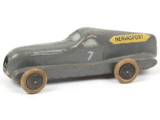 n°7 au pochoir - manques de peinture majeurs sur le bas de caisse avant de la carrosserie - pneus non d'origine (séchés) - petits manques sur les inscriptions - modèle lesté artificiellement